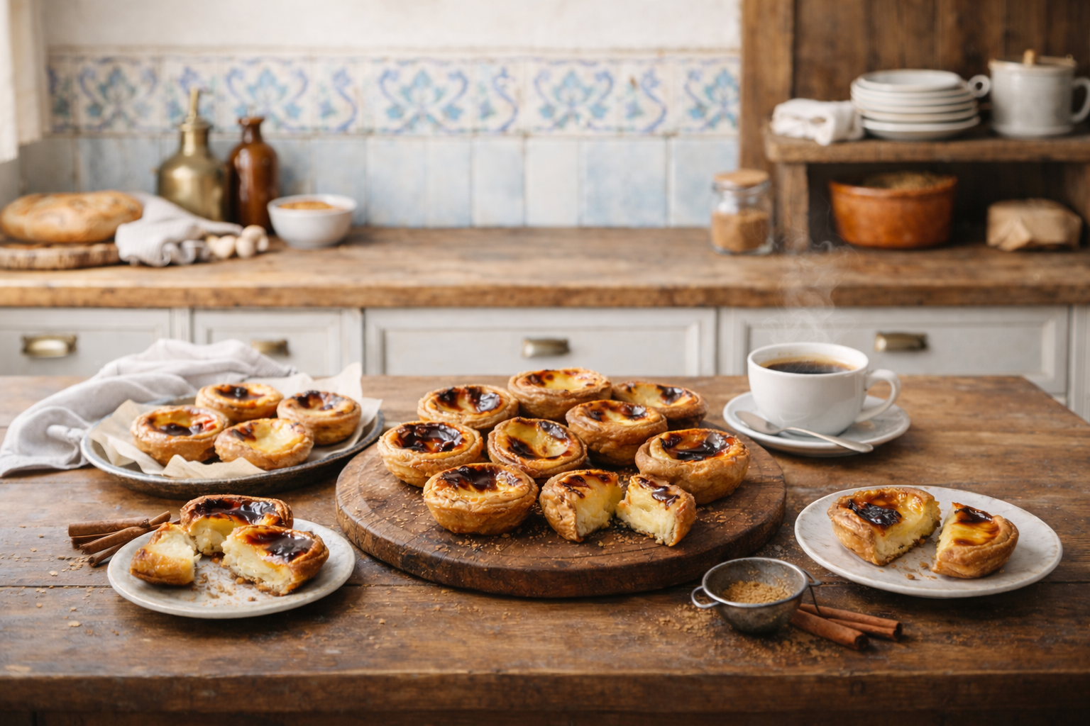 The iconic Portuguese Pastry, made the old way. Flaky, hand-rolled dough. Rich, silky custard. Baked hot until blistered and golden.